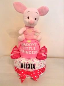 “Daddy’s Little Princess” Piglet Diaper Cake for Baby Alexia.