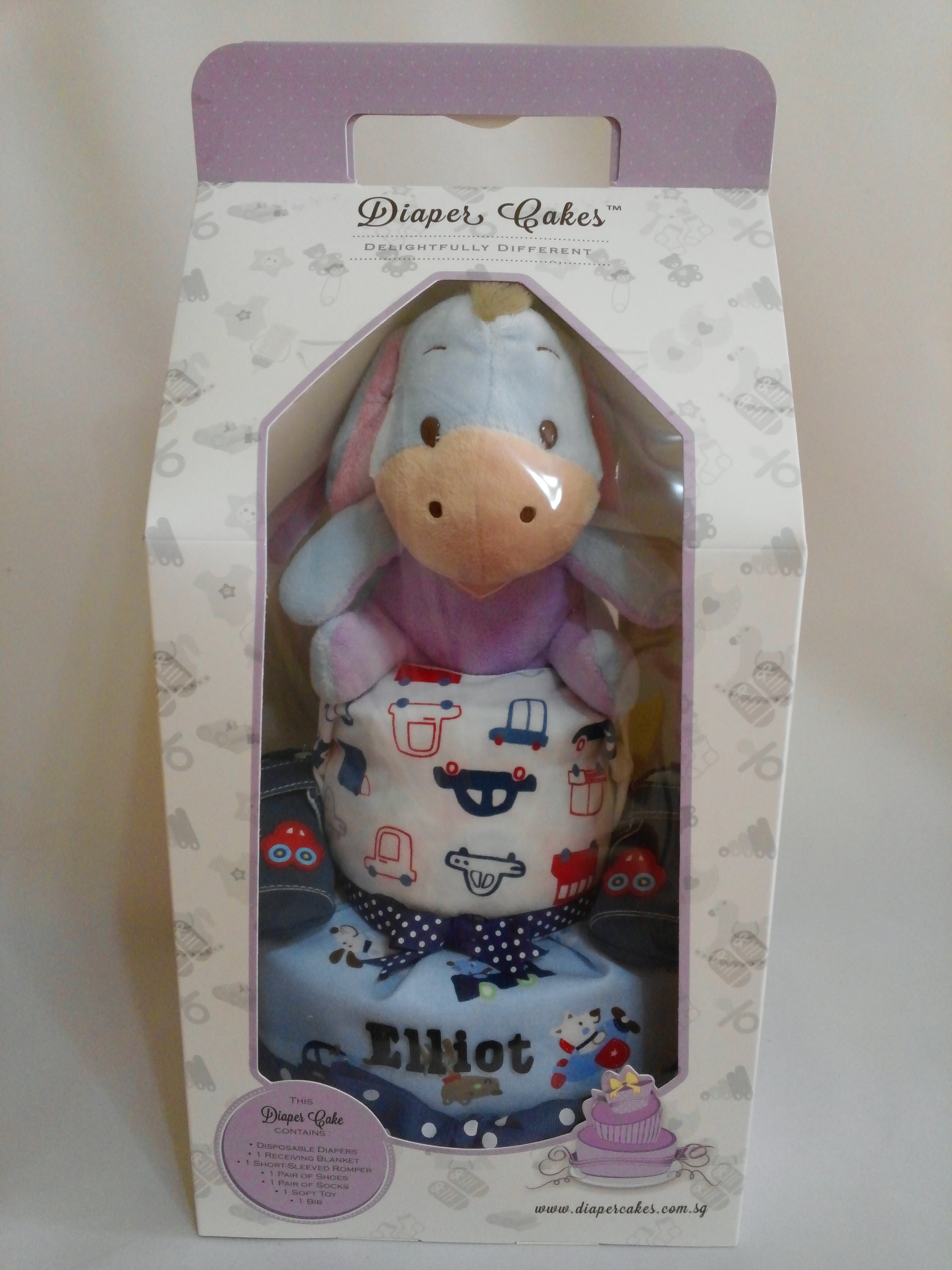 Baby Elliot’s 2-tier diaper cake gift hamper consists of: