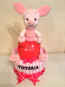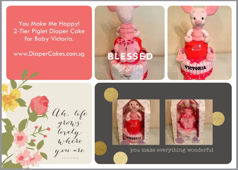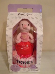 You Make Me Happy! 2-Tier Baby Girl Diaper Cake for baby Victoria.