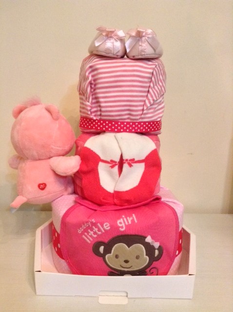 This sweet pink 3-Tier Diaper Cake was made for baby Amethyst.