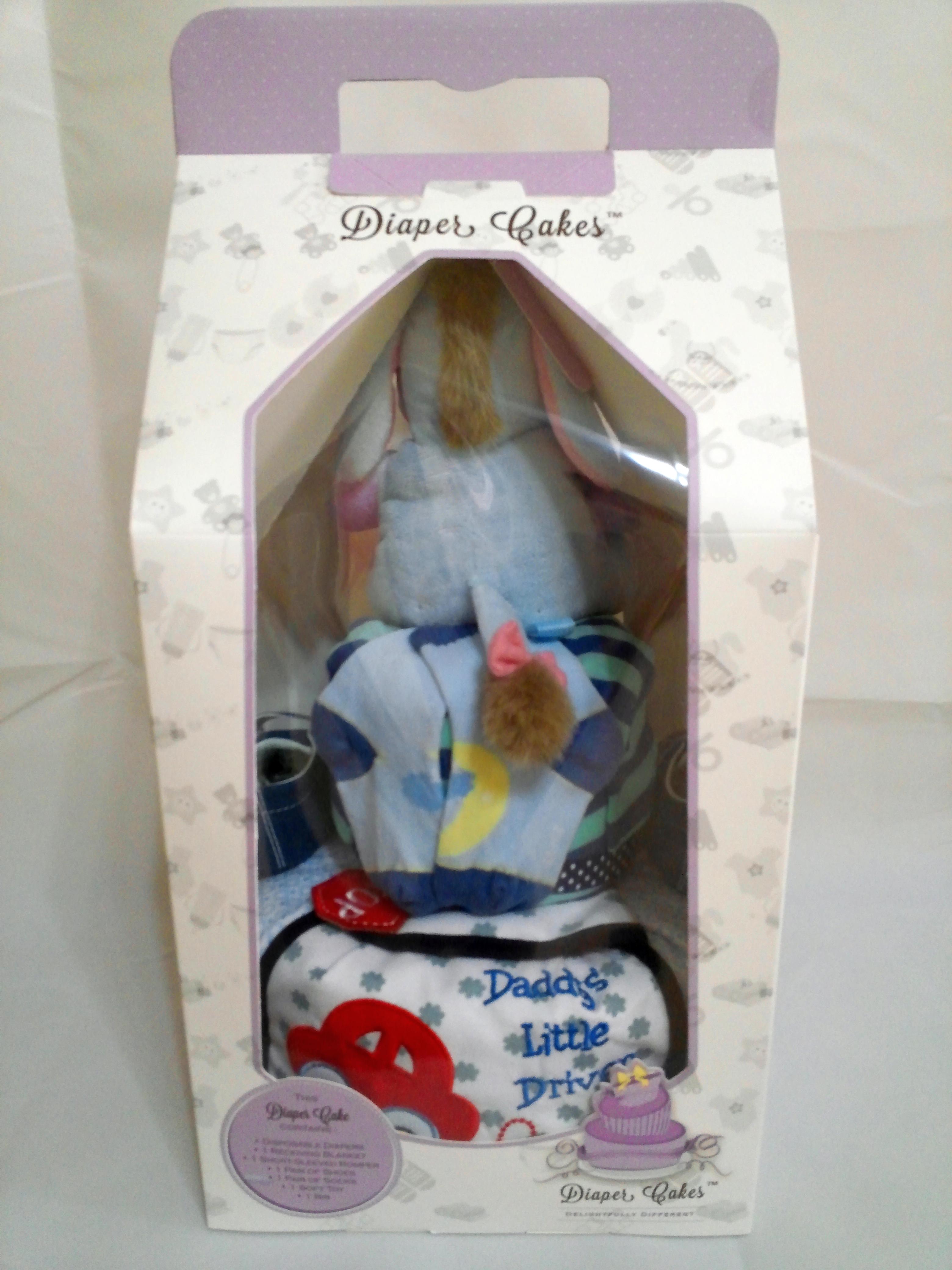 Made entirely of disposable diapers and other useful baby items, Diaper Cakes are perfect for baby showers and full month celebrations.