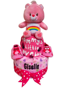 This 2-Tier Baby Girl Diaper Cake full month baby gift consists of: