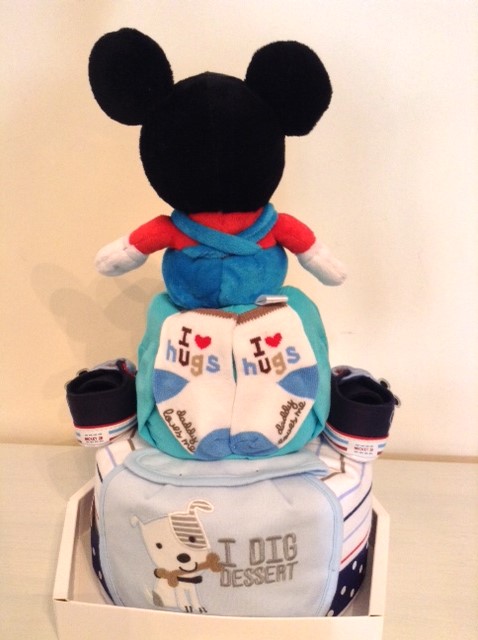 “Sloppy Kisser” Mickey 2-Tier Diaper Cake for baby Patrick.