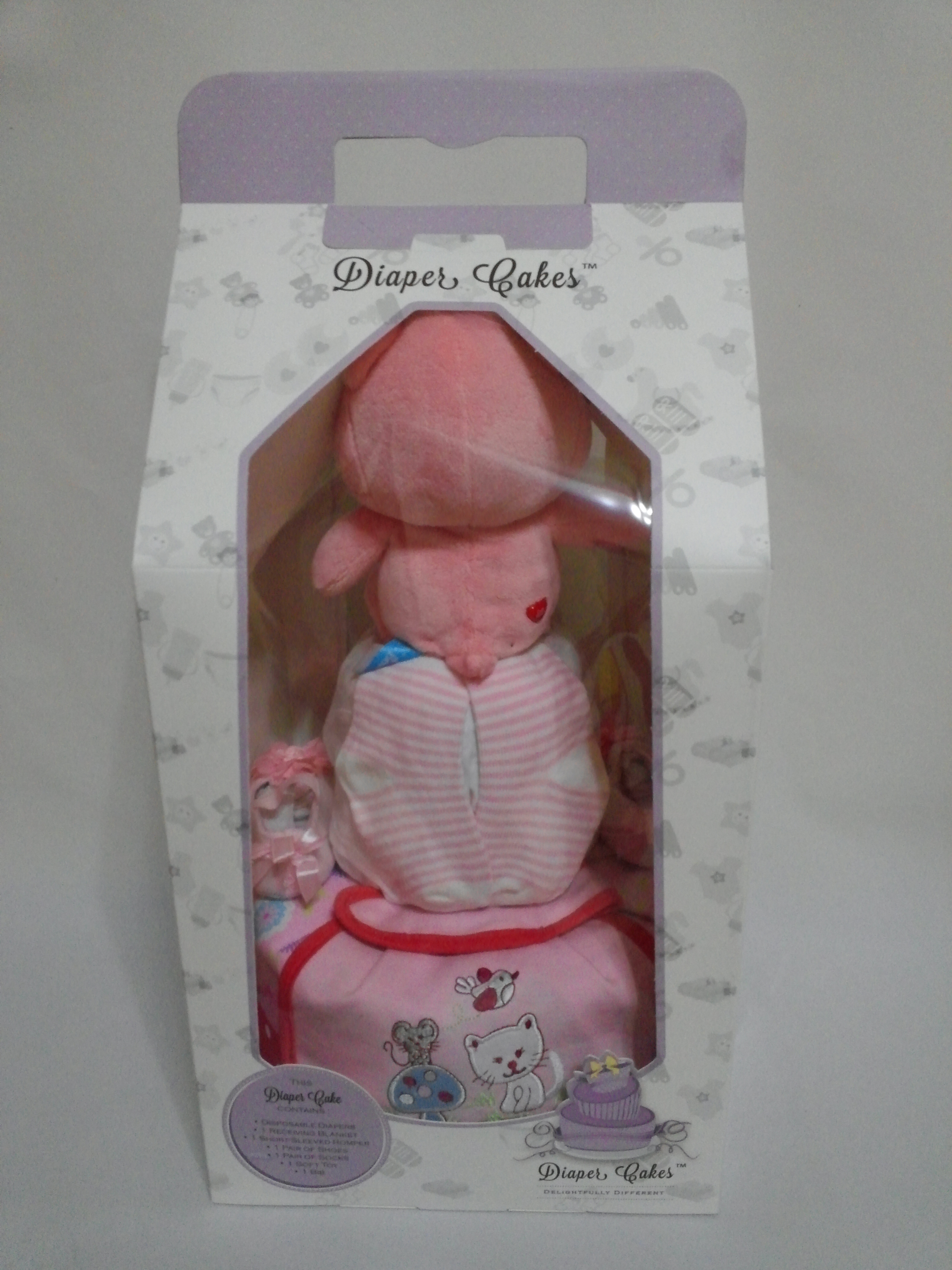 Baby Juby’s 2-Tier Minnie Mouse Diaper Cake consists of: